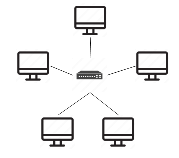 중앙에 있는 노드에 모두 연결된 네트워크 구성입니다.