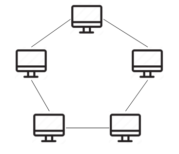 각각의 노드가 양 옆의 두 노드와 연결하여 하나의 연속된 길을 통해 통신을 하는 망 구성입니다.