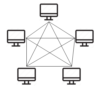 망형 토폴로지라고도 하며 그물망처럼 연결되어 있는 구조입니다.