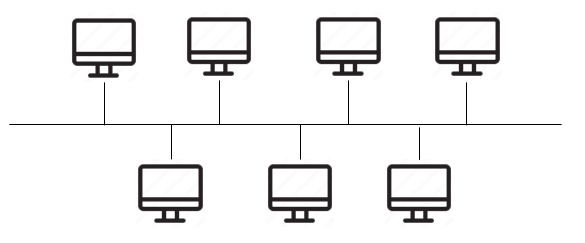 중앙 통신 회선 하나에 여러 개의 노드가 연결되어 공유하는 네트워크 구성을 말합니다.