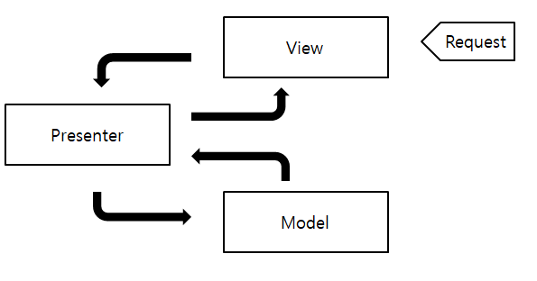 2. View는 사용자의 Request를 확인하고, Presenter에 데이터를 요청합니다.