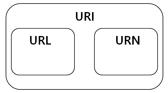 그림에서 보시다싶이 URL과 URN은 URI에 포함되는 의미입니다.