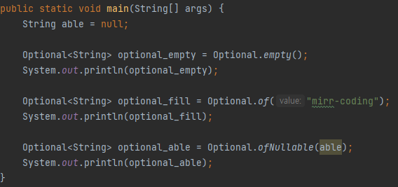 3. Null인지 아닌지 모를 때 : 어떠한 데이터가 null인지 아닌지 모를경우 사용합니다. 이후에 orElse 또는 orElseGet 메소드를 사용해서 값이 null인 경우라도 NPE가 발생하지 않게 값을 가져올 수 있습니다.