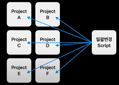 Boilerplate Project 기반의 표준화된 프로젝트 구성과 모듈화된 라이브러리 덕분에 전사프로젝트를 대상으로 공통된 기능의 적용이 용이한편입니다. 전사프로젝트를 대상으로 변경사항을 추가하거나 라이브러리 버전을 올리는 PR에도 문제가 있는 경우가 거의 없습니다 (log4j 보안 취약점 대응이 쉬웠습니다.)