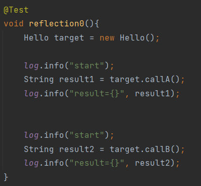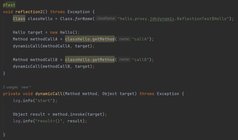 다음과 같이 실행하고 싶은 메서드에대한 속해있는 위치, 실제 클래스 객체를 넘기면 로직이 실행될 수 있게 구성이 가능합니다. 이를 통해 클래스와 메서드의 메타정보를 사용해 동적으로 메서드를 사용할 수 있습니다.