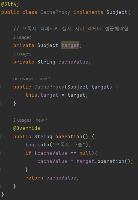 또한 해당 프록시는 실제 서버를 참조하며, 실제 서버가 필요할 시점에 사용을 할 수 있을 것입니다.