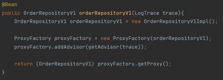 그 후 다음과 같이 실제 객체를 ProxyFactory에 넘기고, Advisor를 추가하여 프록시를 얻어낼 수 있습니다.