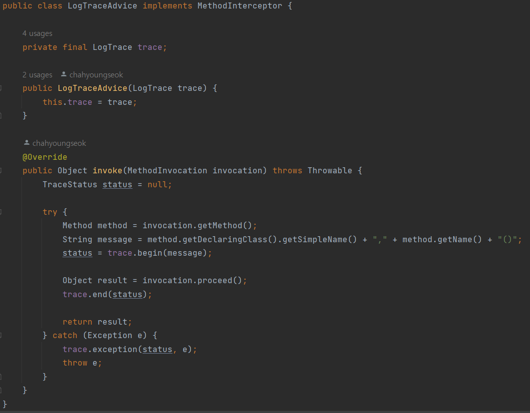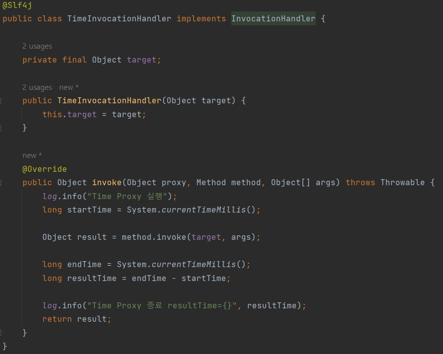 - InvocationHandler에 구성했던 로직 수행 후, method.invoke()을 호출해서 target인 실제 객체를 호출
