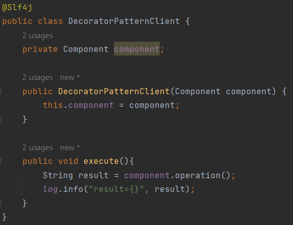 하지만 위의 코드에서 이질감을 느낄 수 있는데, 데코레이터 객체는 혼자 존재할 수 없으므로 항상 Component를 호출해야하는데 이 부분이 중복된다는 점입니다.