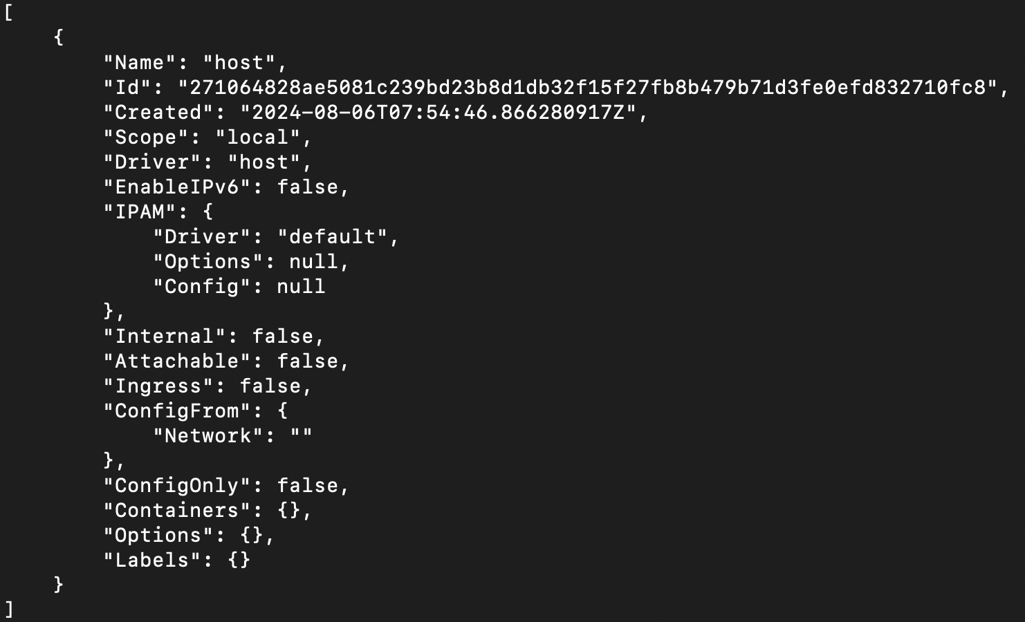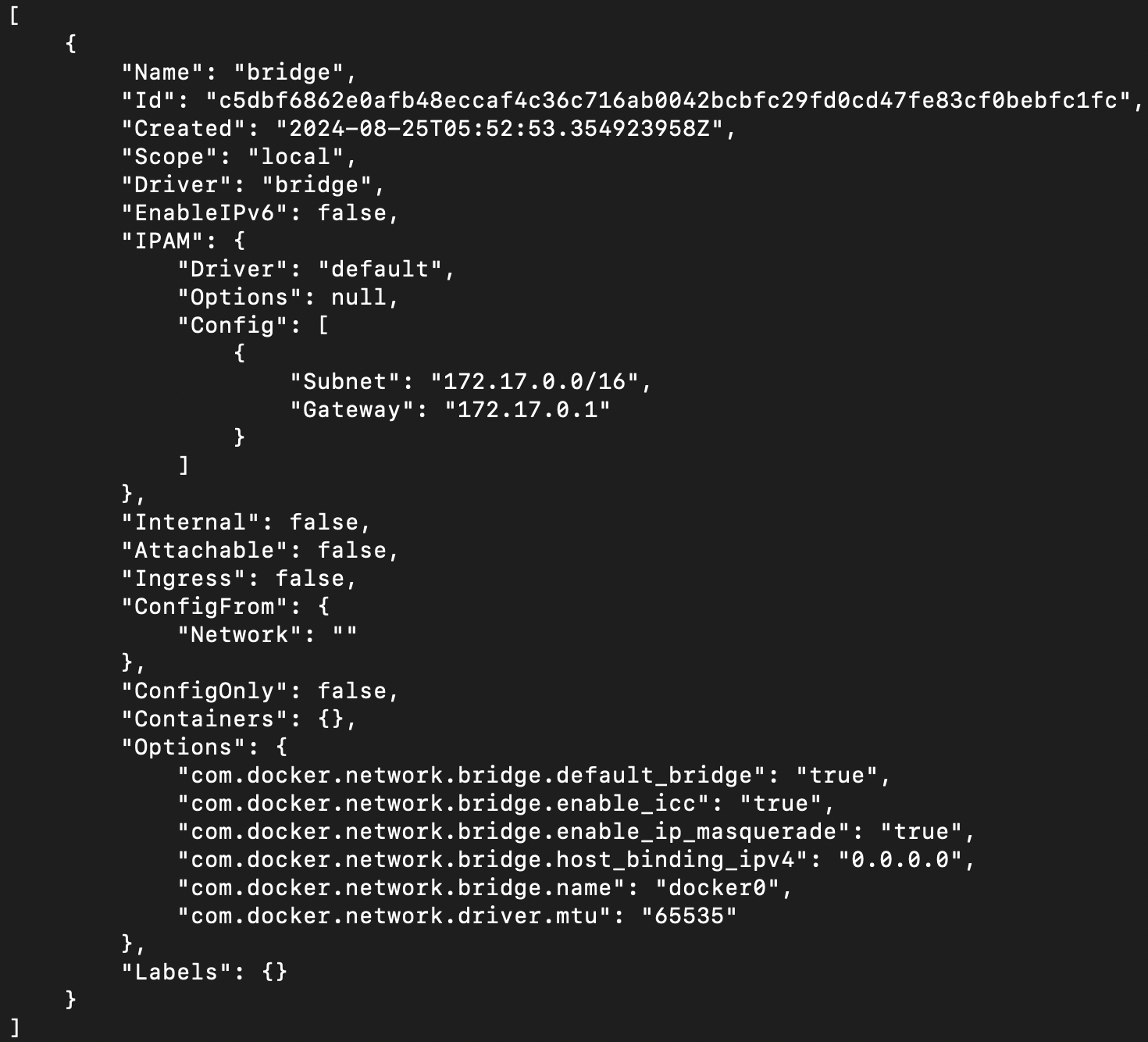 실행중인 컨테이너가 있다면 Containers 에 실행중인 컨테이너의 정보가 나올텐데 IPv4Address가 172.17.A.B/16 의 형식으로 되어있을 것이다.